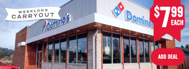 Prices higher for some locations. Carry Out All Pizzas with 1-Topping on Any of Our 6 Crusts and 8-Piece Wings or Boneless Chicken. You must ask for this offer. Prices, participation, and charges may vary. Carryout only. Excludes XL and Specialty pizzas.