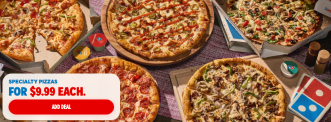 Treat yo self to our best, most premium medium Specialty Pizzas for just $9.99 each when you MIx & Match