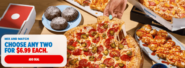 Join Domino's Rewards and get points for every order of $5 or more. Redeem your points for free pizza, bread, drinks, and more exclusive deals and discounts.